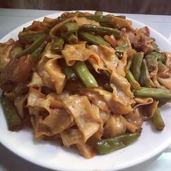 5.Pour down the beans and stir-fry over high heat until evenly distributed.