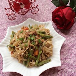 Beans can be replaced with other vegetables, and fresh wet noodles are best used , if using dried noodles, cook them for 6 seconds before putting them into the vegetable pot.Be careful not to add too much water.Simmer over low heat to avoid sticking to the pot.When there is still a little vegetable juice left in the pot, turn off the heat and stir.