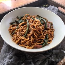 1. Wash and cut beans into sections, and pork belly Slice and mince green onion and garlic