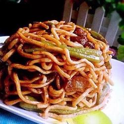 8. When there is not much soup left, mix the noodles and beans evenly, sprinkle with a little chicken essence and stir Mix well and serve.