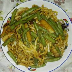 2.Cut the beans and potatoes, and keep some noodles for later use,