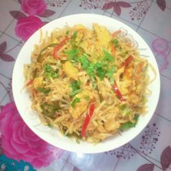 How to make stir-fried noodles with mung bean sprouts and eggs