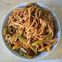 9. After the pot is boiled, add the noodles, put the peppers on top, cover the pot and simmer for fifteen minutes! Add a small amount of MSG when serving!