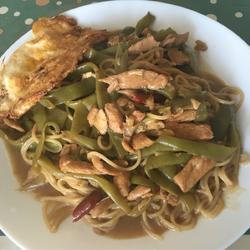 1 How to make braised noodles with shredded chicken and beans