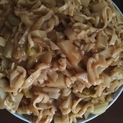 10. Boil the water, sprinkle the noodles in, cover the pot and simmer for 10 minutes until the noodles are cooked