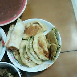 11. Roll out the remaining dough without fillings A set of thin kang pancakes and fruits.