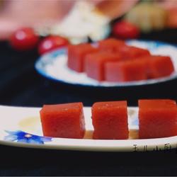 13.Use a spatula to gently rotate around the container, flip the box upside down and shape it The hawthorn cake will come out.