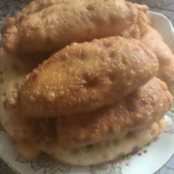 4.Take out one and roll it into a wrapper, which is larger than the dumpling wrapper