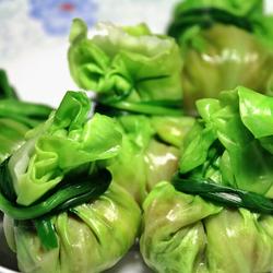3. Leeks and Stir-fry the vegetables in water for half a minute, until soft, take them out, and wrap the mixed minced meat