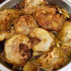 Long eggplant, stuffed with meat ( appropriate amount ) | Flour, flour, oil ( appropriate amount ) |