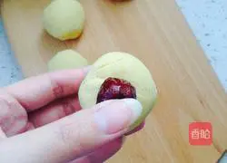 6.Take a piece of dough, stand up a red date and place it in the middle of the dough