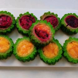 2.When stuffing the fruit, you can also cut the bitter melon rings into slices first and then fill them with the fruit