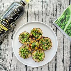 10. Pour a spoonful of June Fresh 12g lightly salted matsutake soy sauce over the steamed eggplant
