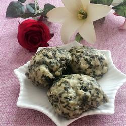 The dough can be a little harder and the sweet potato leaves can be kneaded to extract moisture to avoid being too thin