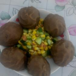 4. Place in the steamer for twenty minutes.After steaming, fry some vegetables and put them in the nest.