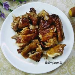 3.Put the chicken into the rice cooker, add oil, light soy sauce, Sugar, ginger slices.