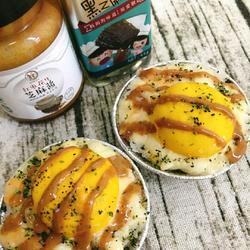 2.Place rice in the high temperature resistant mold and press it in the middle