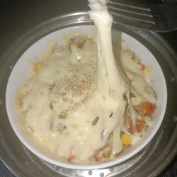 3. Steam it and it’s ready! Sprinkle with toasted sesame seeds for garnish.I poured the tomato sauce on top of the cheese and mixed it last.You can add it or not, depending on your taste