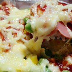 Baked rice can be made in many flavors.You can add various ingredients or meat sauce according to your own preferences.Since the children were anxious to eat, I did not stir-fry or bake in the oven, but the heavy cheese flavor is still very fragrant.If you use It will taste better when baked in the oven with a golden surface!