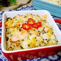 How to make shrimp and cheese colorful baked rice