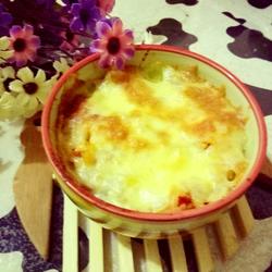 8.Preheat the oven to 200 degrees and bake until the cheese changes color