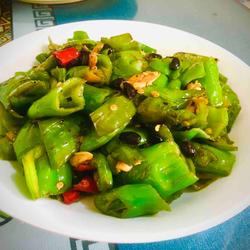 1.Beat the green peppers loosely with a knife, without adding oil, until they become tiger skin color.