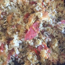 2. Fry the rice, spread it with cheese and bake it in the oven for 16 minutes