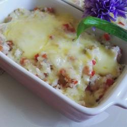 8. Place in the middle rack of the oven and bake at 150°C for 15 minutes.(The time is determined according to the temperature of your own oven, until the cheese is completely melted.)