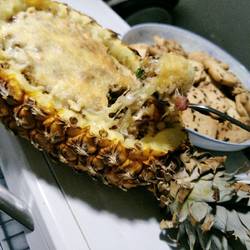 2. Fried Put the rice into the pineapple and cover it with a layer of cheese