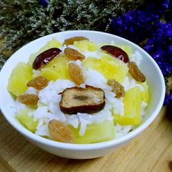 1. Cut the pineapple into one layer of rice, one layer of pineapple and then another layer of rice.Lay out one layer.