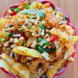 3.3.1 Add special wolf tooth potato mixing powder (available on a certain treasure).If not, you can choose your own ingredients: salt 10 grams, 10 grams of chili noodles, 5 grams of Zanthoxylum bungeanum noodles, 5 grams of Shisanxiang, etc.are used as ingredients, stir evenly.