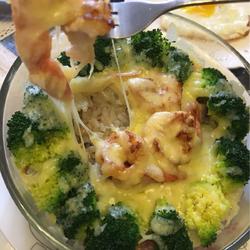 8.Place the fried rice into a large bowl for the oven and compact it.