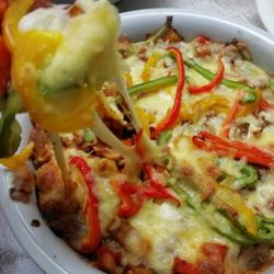 Onions and chicken breasts ( Appropriate amount ) | Green and red peppers ( Appropriate amount ) |