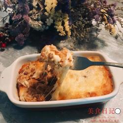 9.The delicious tomato, beef and cheese baked rice is ready.