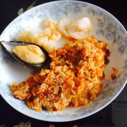 9. Place the seafood on the rice and simmer for ten minutes until cooked
