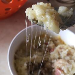 4. Add the rice to the pot, add salt, sugar and chicken essence, stir-fry for a while and serve out