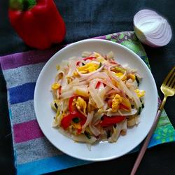 8.Put Stir-fry the shredded bell peppers and onions for a while