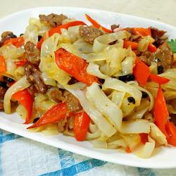 Recipe for fried rice noodles with black pepper and beef