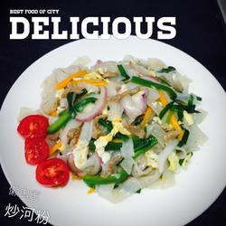 6.After frying the vegetables Add the rice noodles and stir-fry for a few times.Add the pepper and salt and stir well.