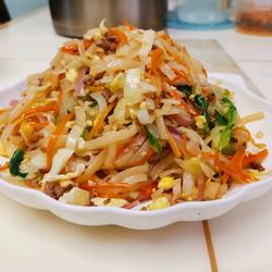 The rice noodles need to be stir-fried first, and some soy sauce is added to add base flavor and color.