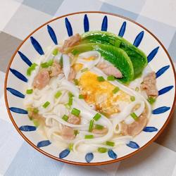 10.A dish of egg and lean meat soup rice noodles is ready~