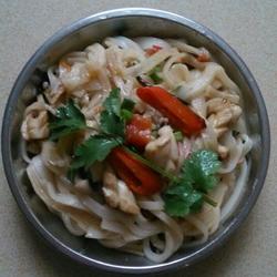 1.Place the rice noodles into a plate first and set aside