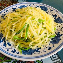 2. Add water to the pot and bring to a boil, add shredded potatoes, add a little white vinegar, and blanch for 1 minute Take it out and take a shower.