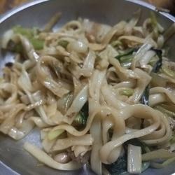 Recipe for stir-fried rice noodles with celery, chopped green onion and lean meat