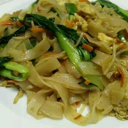 6.Put in the scrambled eggs, rice noodles, seasonings, and stir-fry the dark soy sauce for 2 minutes