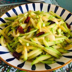1.Wash the zucchini and cut into shreds.Prepare minced garlic and dried chili peppers.