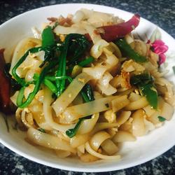 3. Add the rice noodles and stir-fry for a while, then add the seasoning
