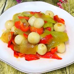7.Then pour in the Lantern Festival, sprinkle with salt and stir-fry evenly
