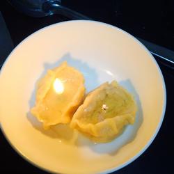 6. Steam in a steamer for 10 to 20 minutes and take out.Insert a wooden cotton swab into the middle to make a wick, pour in vegetable oil, and light the match