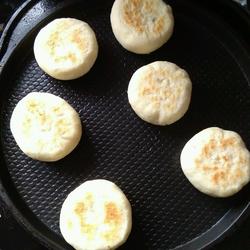 12. Like making buns, put brown sugar powder and sesame powder into the dough and wrap it into Bun shape, finally press flat.